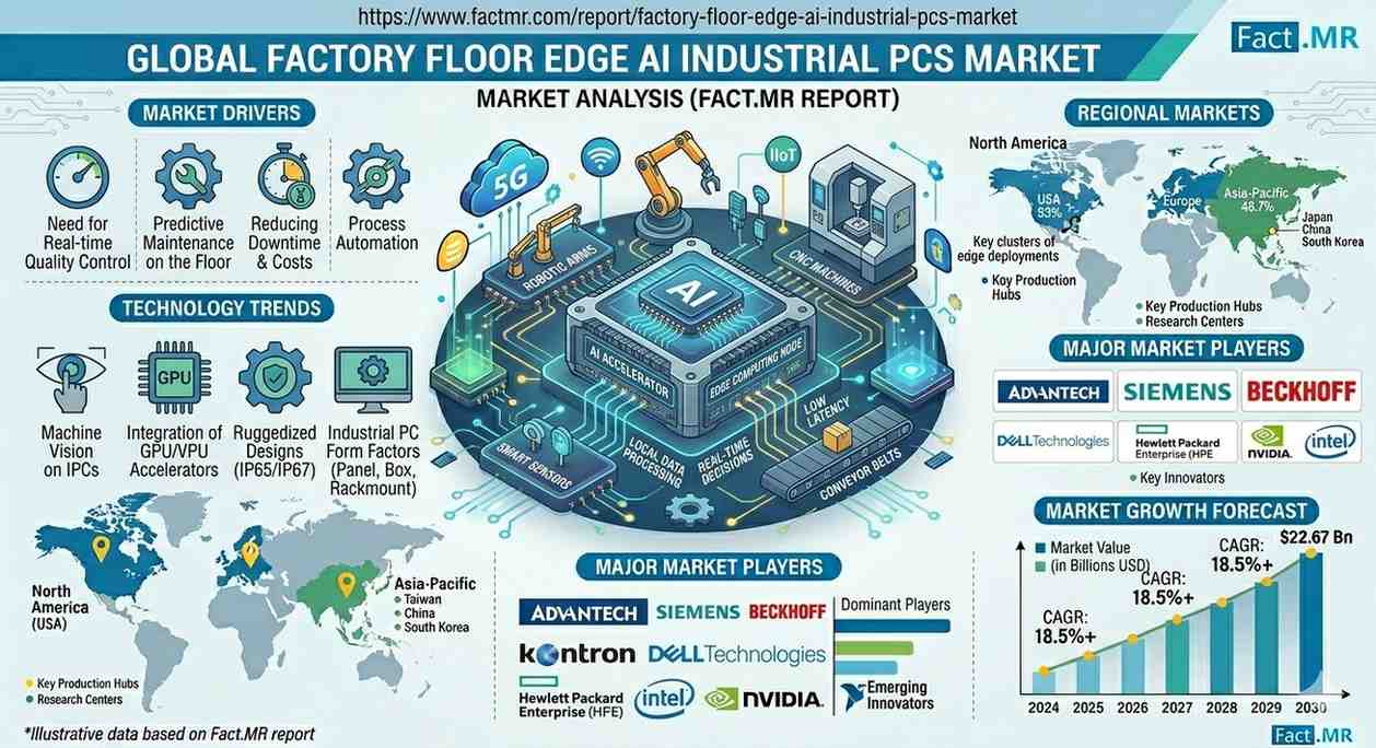 ROCKVILLE, MD, UNITED STATES, April 7, 2026 /EINPresswire.com/ — The global Factory Floor Edge AI Industrial PCs (IPCs) market is undergoing a seismic shift, projected to grow from USD 0.68 billion in 2026 to USD 1.37 billion by 2036. This trajectory represents a steady 7.3% CAGR, driven by the urgent industrial requirement for real-time, autonomous decision-making at the “Extreme Edge” of manufacturing.